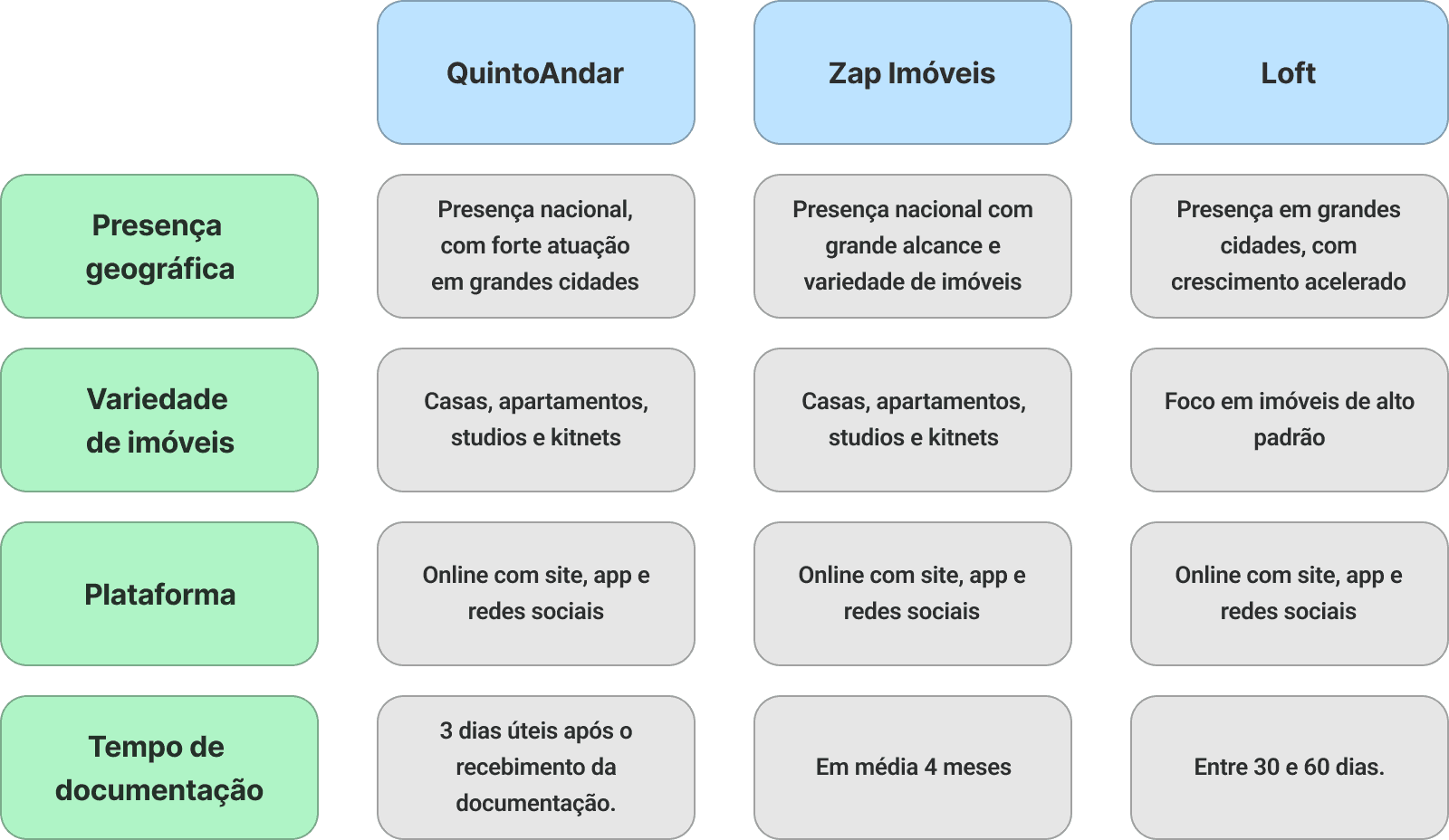 Consegue-se identificar que o QuintoAndar já vem desburocratizando o mercado, porém está voltado para as grandes cidades.